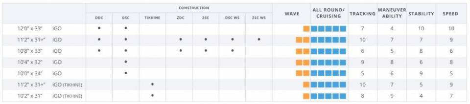 Das Starboard iGO Deluxe ist in den folgenden Größen erhältlich:
