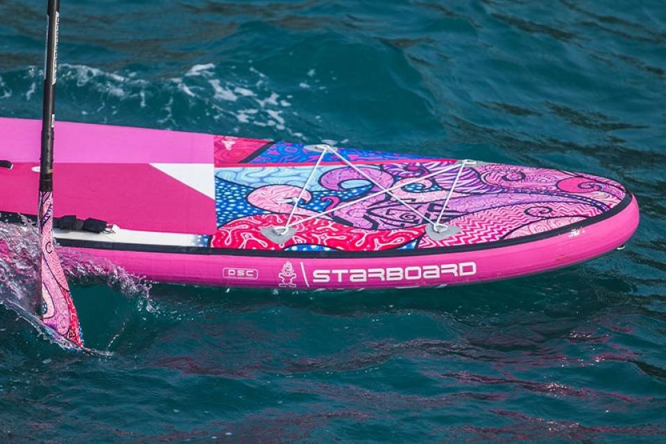 - Gepäcknetz: Starboard’s “Bungee Tie-Down” befindet sich an der Nose des Boards