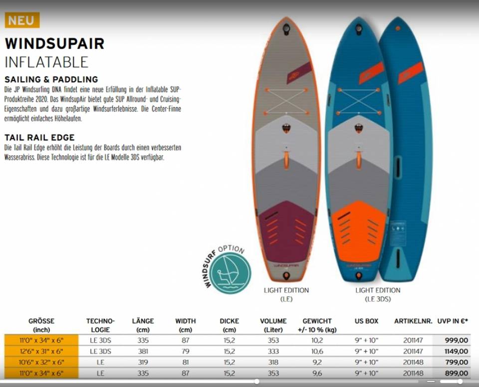 JP Australia WindsupAir in 3 Größen und 2 Bauweisen