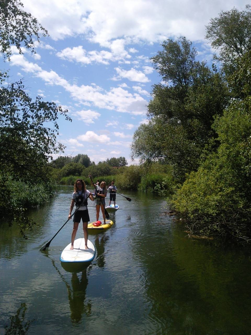 Geführte SUP-Touren auf Zahmwasserflüssen mit technischer Einführung am Fluss