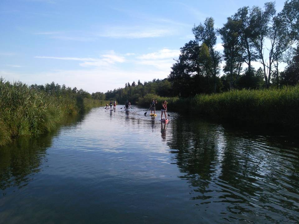 - Fluss: Unsere beliebten SUP Zahmwasserflusstouren finden an verschiedenen Flüssen in der Nähe von München und in Bayern statt, z.B. Amper und Hammerbach