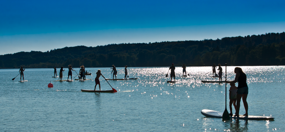 -Wir empfehlen einen Kurs / Tour an der ruhigen SUP Station Pilsensee. Dort können dann gleichzeitig verschiedene Bretter getestet werden.